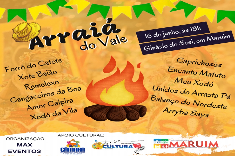 No próximo sábado, 16, a partir das 13h, no Ginásio de Esportes do Sesi, em Maruim/SE, acontece o 1° Concurso de Quadrilhas Juninas do Vale do Cotinguiba. O evento é promovido por Max Eventos com apoio cultural da Câmara de Vereadores de Maruim e da Prefeitura de Maruim, através da Secretaria Municipal de Cultura e Turismo.