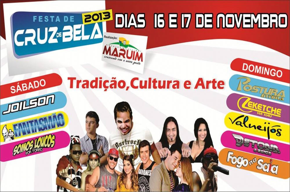 A tradicional Festa de Cruz de Bela, no município de Maruim, acontece nos dias 15, 16 e 17. A festa acontece, anualmente, em virtude do assassinato acidental da menina Bela, no dia 15 de novembro, há cerca de cem anos, segundo a professora e historiadora, Lúcia Marques.