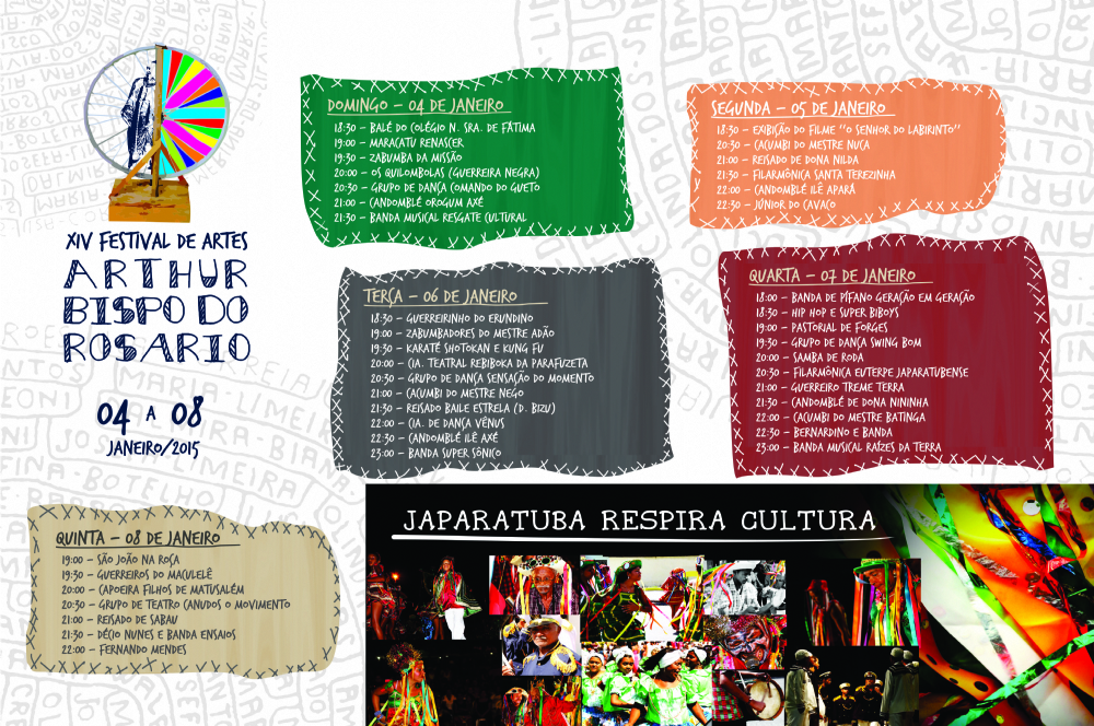 A 14ª edição do Festival de Artes Arthur Bispo do Rosário acontece até a próxima quinta-feira, 7, em Japaratuba, com diversas apresentações culturais, folclóricas e artísticas. O evento iniciado no último domingo, 4, faz parte das celebrações alusivas aos Santos Reis e São Benedito.