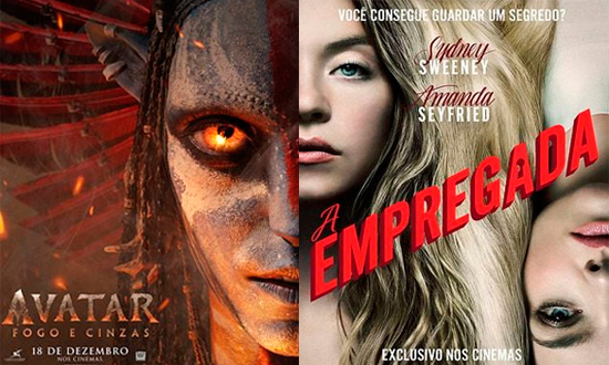 Os cinemas recebem duas estreias nesta semana: “Avatar: Fogo e Cinzas”, que dá continuidade à franquia de sucesso criada por James Cameron com novas aventuras no universo de Pandora, e “A Empregada”, que também chega às telonas como novidade no circuito.