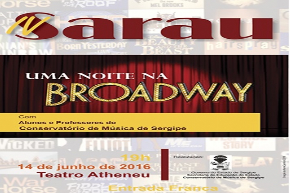 Uma oportunidade de mostrar ao grande público o que aprendeu. Assim será o Sarau Uma Noite na Broadway, o qual será apresentado por alunos e professores do Conservatório de Música de Sergipe. O evento acontecerá no dia 14 de junho, às 19h, no Teatro Atheneu, e a entrada será gratuita.