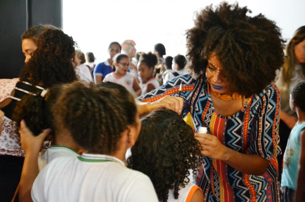 Por fim, todas as crianças pintaram seus rostos e algumas utilizaram e aprenderam a fazer amarrações com turbantes. Uma destas alunas foi Camille Evelyn, que ressaltou a importância de reverenciar a cultura africana. “Gostei muito de participar da história. Thaty quis mostrar que uma negra também pode ser uma princesa e que devemos respeitar nossos amigos do jeito que eles são”, disse.