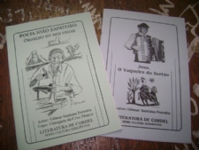mas ele não vive bem. O João Firmino, já está aposentado, filhos criados, e tem uma banca de cordel no mercado. Mas se fosse pra eu manter minha família não dá. Além de fazer cordel, eu coordeno um projeto de alfabetização no Estado, de uma Ong de São Paulo em parceria com a Petrobras, e sou educador popular.