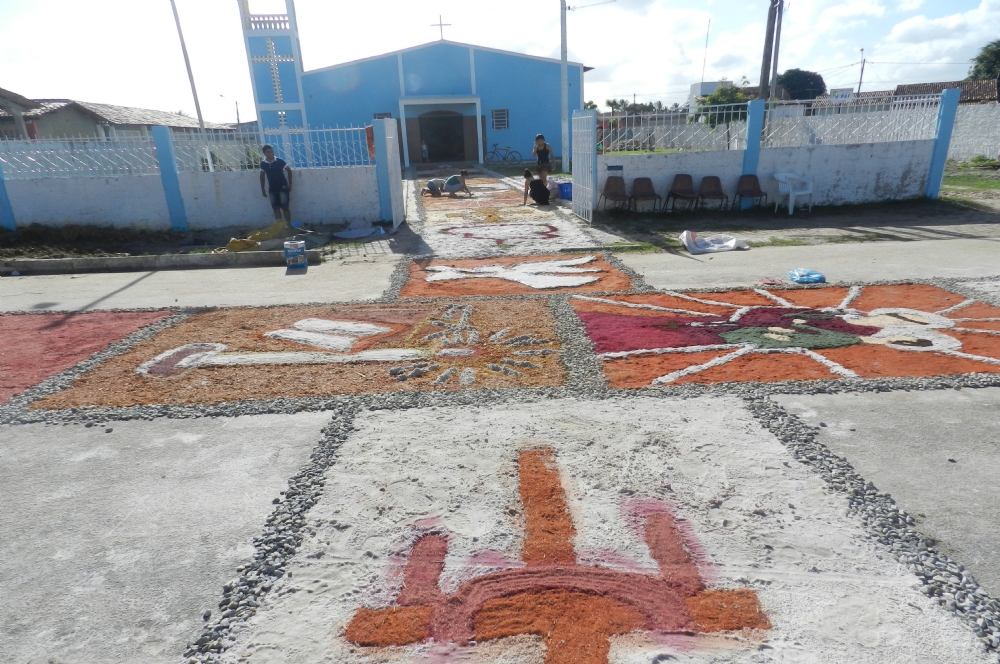 Segundo Suelem Santos, umas das adolescentes que ajudou a confeccionar o tapete, primeiro os fiéis assistiram uma missa na paróquia, que começou às 16h, e depois saíram em procissão pelas ruas do bairro.