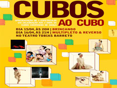 A Cubos Companhia de Dança realizará nos dias 15 e 16 de abril, esta quinta e sexta-feira, um evento comemorativo aos três anos da companhia denominado ‘Cubos Ao Cubo’. Na ocasião haverá apresentação dos três espetáculos que integram o repertório da companhia: ‘Multipleto’, ‘Brincando’ e ‘Reverso’, além de uma programação especial. O evento acontece no Teatro Tobias Barreto.