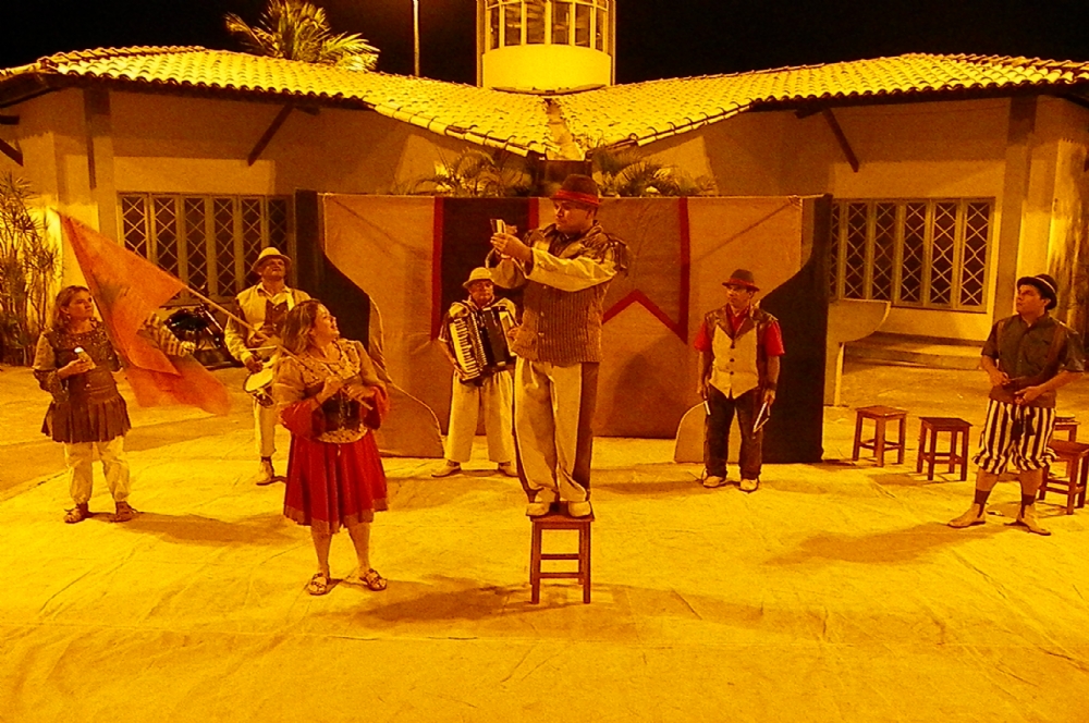 A dramaturgia de Altimar Pimental, Ariano Suassuna, José Maria Rodrigues e Aglaé Fontes, inspiraram a Companhia de modo que o texto apresenta um nordeste feliz com suas histórias e causos, com suas danças características e com seus sons marcantes da sanfona, zabumba e triângulo.