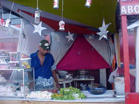 “Essa é a oportunidade que temos para vender o máximo, portanto é preciso caprichar no visual para atrair cada vez mais os clientes”, destacou o trabalhador que, com o auxílio de estrelas e fitas, mantém ativa a venda de churrasquinhos, queijos, cachorros-quentes e bebidas.