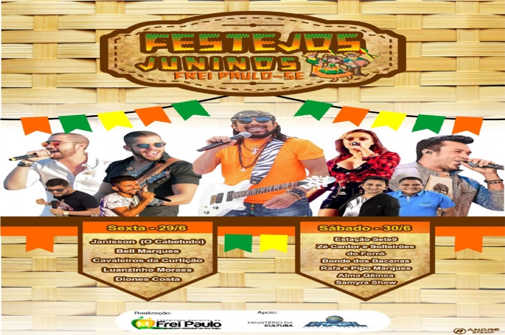 A Prefeitura de Frei Paulo irá realizar o maior Festejo Junino de todos os tempos, que acontecerá nos dias 29 e 30 de Junho, na praça de eventos João Alves de Oliveira "João de Santa", e preparou uma grande programação para proporcionar alegria e diversão aos frei paulistanos e visitantes, nos dias de festa.