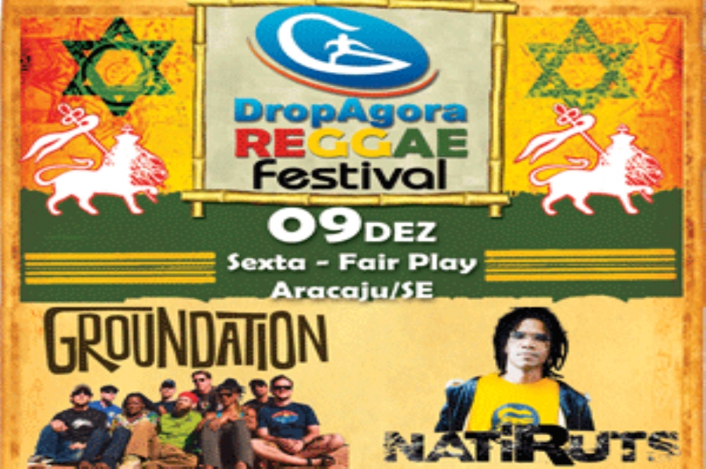 Acontece em dezembro o maior evento de Reggae que Aracaju já viu, o DropAgora Reggae Festival, que vai unir uma das maiores bandas de Reggae do Mundo na atualidade, juntamente com um dos maiores nomes do Reggae Nacional. Groundation (USA), Natiruts (Brasília) e a Dream Zion (SE), farão uma noite especial, que entrará pra história do Reggae Sergipano. A vibe acontecerá no dia 9 de dezembro, sexta, a partir das 21h, no Espaço Fair Play, localizado na Rodovia dos Náufragos.