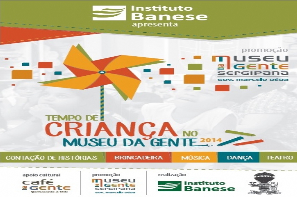 Em comemoração ao 12 de outubro, mais conhecido como Dia da Criança, o Museu da Gente Sergipana promove uma programação especial inteiramente dedicada ao público infantil, que vai além de um dia. De 07 a 12 de outubro será ‘Tempo de Criança no Museu da Gente’, um tempo de muita brincadeira, diversão e magia. Realizada pelo Instituto Banese e Governo de Sergipe, com a promoção do Museu da Gente Sergipana e apoio do Café da Gente, a programação tem como objetivo homenagear as crianças através de atividades lúdicas e criativas que as aproximem das artes e da cultura popular de Sergipe.