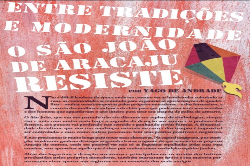 Nesta edição a matéria de capa é assinada pelo colaborador, Yago de Andrade. O texto com o título “Entre tradições e modernidade o São João de Aracaju resiste” trata sobre o são João, que em um passado não tão distante era repleto de simbologias, simpatias e unia com muito mais força o sagrado da devoção aos santos e principalmente os arraias dos bairros, produzidos pelos próprios moradores.