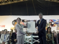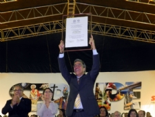 | Ministra da Cultura entrega título às mão do governador Déda |