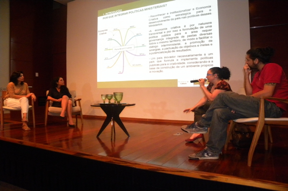 Luciana Guilherme do Minc explicou os prinicipais conceitos da economia criativa. “Ela compreende a troca cultural, social e econômica de setores cuja produção está baseada no ato criativo. É a economia dos atores que trabalham com o simbólico e tangível e nossa grande tarefa é desenvovler isso a partir da vocação local”, comenta.