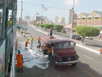 Ao todo 21 equipes de limpeza, com 14 homens cada, trabalham recolhendo todo o lixo e fazendo a varrição do local. Pela manhã, a equipe fez a limpeza na área onde estão localizados os camarotes. “Estamos trabalhando desde cedo. Começamos pelo terminal Fernando Sávio, seguimos para a Rodoviária Velha, passamos pela quadra do Vasco e em frente aos mercados, onde recolhemos todo o lixo”, informou o agente de limpeza, João Ginaldo Santos. Segundo ele, as equipes não estão tendo dificuldades no recolhimento dos resíduos, principalmente os tóxicos, pois a utilização das luvas está evitando contato direto com o lixo recolhido.