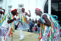 Uma das mais antigas brincadeiras de São Gonçalo existentes em Sergipe é a do povoado Mussuca, em Laranjeiras. Elierton dos Santos Nascimento, de 32 anos, é um dos componentes e explica que o grupo existe, essencialmente, para pagar promessas. Mas a promessa, seja de quem for, só é paga pelo grupo assim que o pedido é atendido. “Só vamos dançar quando a pessoa é atendida”, explica Elierton. São sete dias para pagar a promessa. Nos seis primeiros, o grupo ensaia sete jornadas (parte da dança) por dia. No último, um domingo, quem recebeu a graça do Santo prepara um almoço para o grupo, que às 16 horas sai em procissão. Os movimentos muito sensuais parecem mais um jogo de conquista, já que os dançadores representam prostitutas que São Gonçalo recuperou através da dança. Não é à toa que os homens se vestem com saias, fitas coloridas e colares. Tudo isso serve para simbolizar as prostitutas. A religiosidade do grupo é visível. Assim que começa a brincadeira eles fazem o sinal da cruz. Quando termina também. Para acompanhar o gesto, os brincantes cantam: “Nas horas de Deus amém. Padre, Filho, Espírito Santo. Essa primeira cantiga que pra São Gonçalo eu canto”. HISTÓRIA – “São Gonçalo era marinheiro e tocava viola. Quando era jovem se preocupava muito com as moças, queria evitar que elas fossem para o caminho da perdição. Então, tocava para elas dançarem”, conta Elierton. Ele diz ainda que o Santo foi o parteiro de duas prostitutas e depois que morreu a dança continuou. São Gonçalo morreu em 1262 e foi canonizado somente em 1561. O rei de Portugal Dom João III, um grande devoto, foi um dos primeiros a empenhar-se para a beatificação do Santo em Roma. Em Portugal a sua festa é realizada em Amarante, no dia 7 de Junho. O Patrão é o chefe. Dirige os ensaios tocando um pequeno tarol (tipo de tambor). As diferentes batidas simbolizam sinais para a realização das evoluções na dança. Quem vê a animação de Seu José puxando o grupo logo percebe o quanto ele gosta do que faz. “Pra mim não tem coisa melhor”, confessa. Além do filho, a esposa de Seu José, Maria Santana, também participa do São Gonçalo. E tem a honra de ser, há 40 anos, a única mulher no grupo. Na brincadeira, ela se chama Mariposa, figura responsável por levar a imagem do Santo em um barquinho durante as apresentações. Por Janaina Cruz