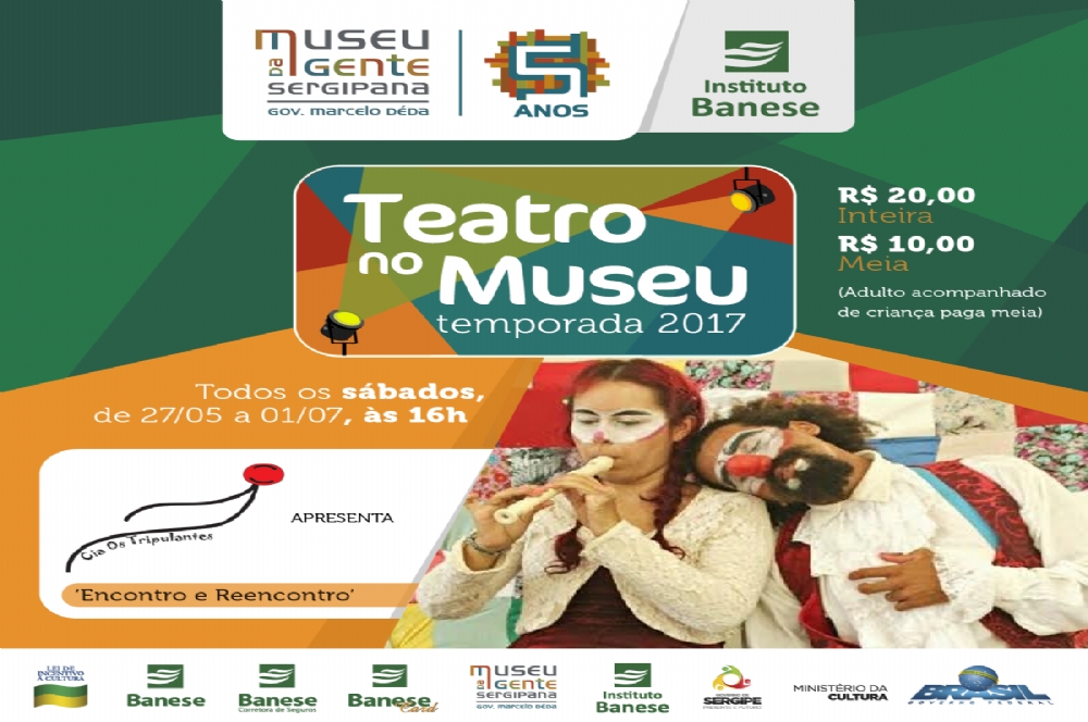 Dando continuidade à temporada 2017 do Teatro no Museu, no próximo sábado, dia 27, às 16h, entra em cartaz o espetáculo ‘Encontro e Reencontro’, da Cia. Os Tripulantes. A peça é a terceira a se apresentar no átrio do Museu da Gente Sergipana em mais uma edição do projeto Teatro no Museu, cujo objetivo é abrir espaço para projetos de artes cênicas direcionados a crianças, adolescentes e toda família, fomentar a produção artística local e a formação de plateia. Esse ano, a iniciativa do Instituto Banese, através do Museu da Gente Sergipana, conta com a parceria das Companhias Ponto de Teatro, Os Tripulantes, Catalise, Cígari, Ubuntu – Teatro Negro, Cia. dos Sonhos e do contador de histórias Luciano Góis.