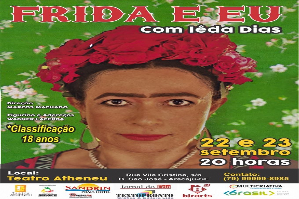 Este ano junto com a primavera, enfim FRIDA E EU, chega a Aracaju, com duas apresentações imperdíveis nos dia 22 e 23 de setembro, as 20h no teatro Atheneu. Vale Conferir!