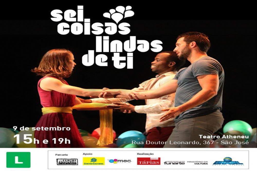 O Grupo Tápias Cia de Dança, do Rio de Janeiro, se apresenta na capital sergipana hoje, 09 de setembro, com o espetáculo “Sei Coisas Lindas de Ti”. A apresentação ocorre em duas sessões, às 15h e às 19horas, no Teatro Atheneu, ambas com entrada franca.