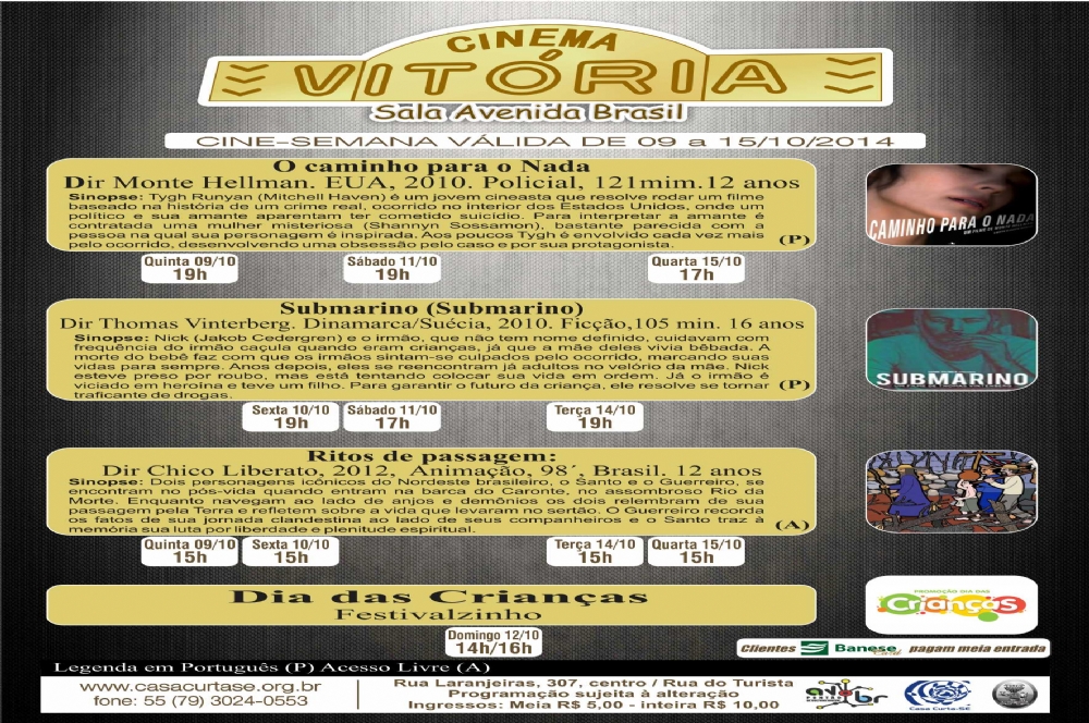 Em comemoração ao dia das crianças, o Cinema Vitória traz no dia 12 de outubro a Mostra Festivalzinho com curtas infantis apresentados durante o Festival Iberoamericano de Cinema de Sergipe, o Curta-SE.