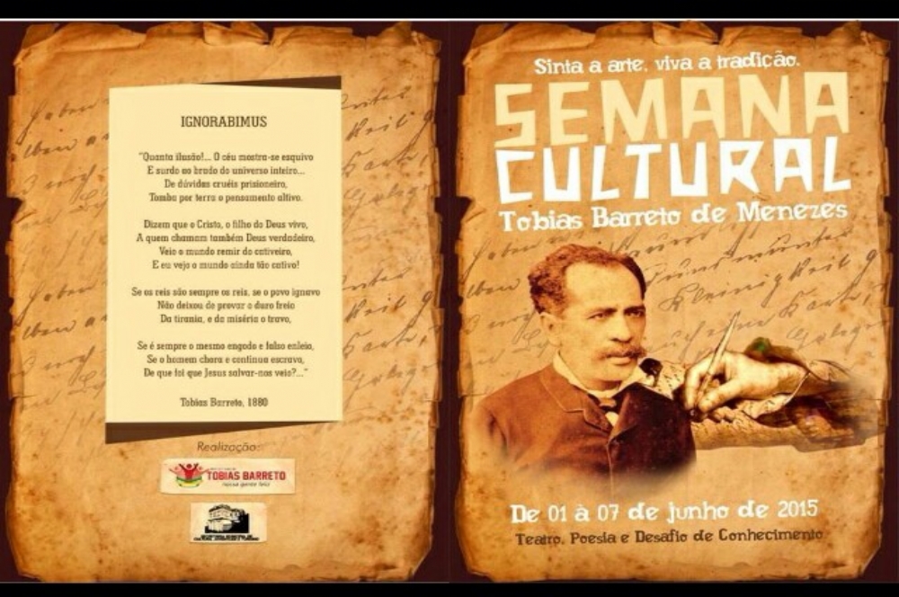 A Semana Cultural Tobias Barreto de Menezes é promovida pela Secretaria Municipal da Cultura, que premiará a escola que obtiver maior pontuação com uma viagem cultural com destino às cidades pernambucanas de Escada e Recife, onde Tobias Barreto pode aflorar todo o seu conhecimento. “É uma forma de valorizar um intelectual sergipano que rompeu as limitações de uma época para ganhar o mundo e estimular o interesse pelo aprendizado nos nossos jovens”, explica o secretário da pasta e idealizador do projeto, Josenilson Bispo.