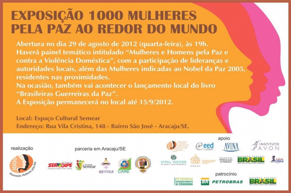 A exposição reúne imagens de mulheres indicadas ao Prêmio Nobel da Paz 2005 que, em 150 países representavam lutas contra a violência, opressão e miséria nos seus locais de origem. Entre essas, 52 eram brasileiras que terão suas histórias contadas no Livro Brasileiras Guerreiras pela Paz, cujo relançamento acontecerá nessa mesma noite. A exposição passou sete cidades: Brasília; Santo André; Foz do Iguaçu; Rio de Janeiro; Recife; Porto Alegre e Macapá. De Aracaju, segue para Cuiabá.