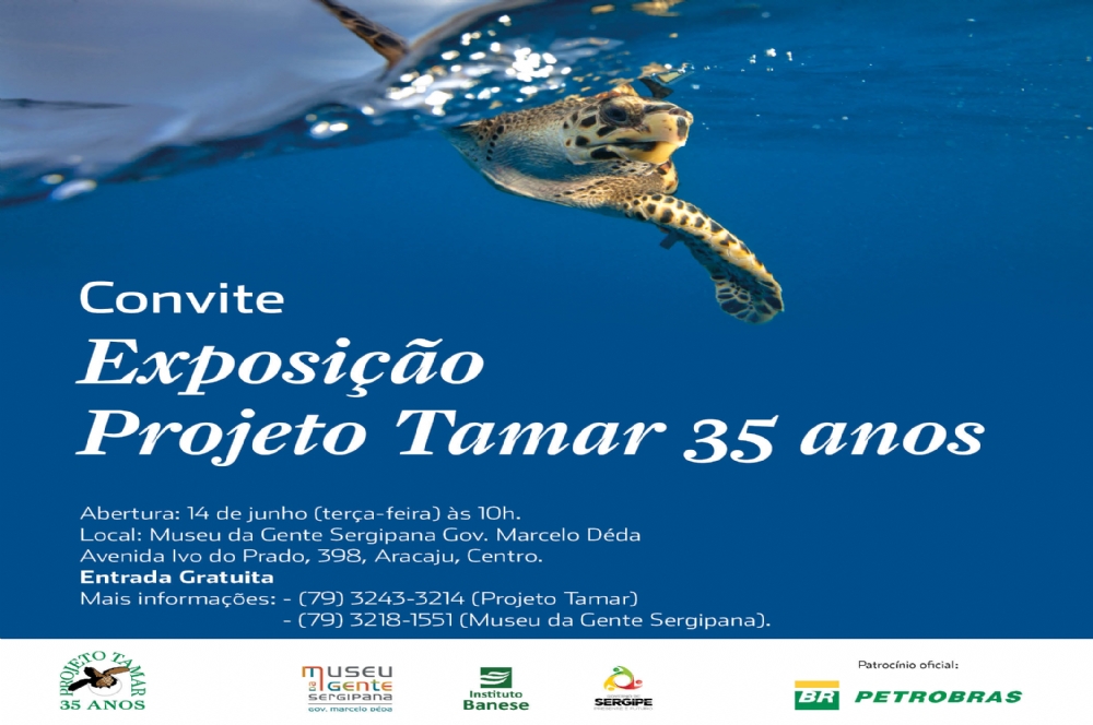 Junho é um mês muito especial para conservação da natureza. Comemora-se o dia mundial do meio ambiente, 5, o dia mundial dos oceanos, 8 e o dia internacional da tartaruga marinha, 16. Para unir essas datas e celebrar a vida das cinco espécies de tartarugas marinhas que existem no Brasil, o Projeto Tamar inaugura a exposição 'Tamar 35 anos', em Aracaju, no Museu da Gente Sergipana Gov. Marcelo Déda, a partir do dia 14 de junho, com entrada gratuita e apresentação de grupos culturais apoiados pelo Tamar, marcando uma importante parceria entre as duas instituições na divulgação do patrimônio natural.