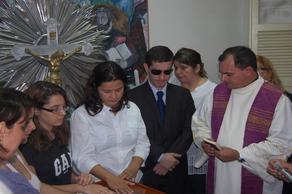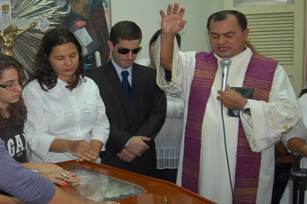 | Padre Rinaldo Resende conduziu a celebração no velório (Fotos: Portal Infonet) |