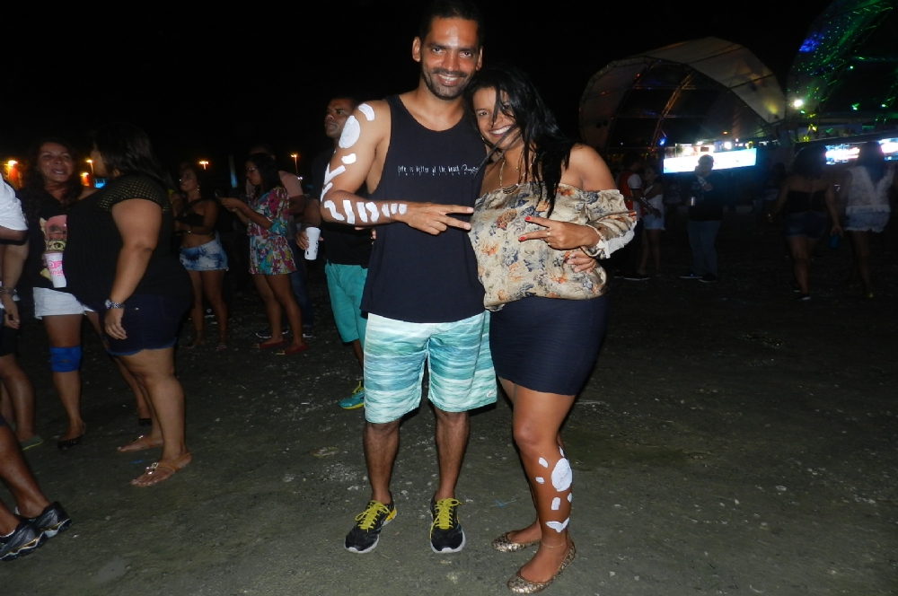 O casal Grazielle Silveira e Tiago Chagas são fãs da Timbalada há tempos, mas escolheram o Fest Verão estrear as pinturas no corpo. “É muito bonito e representa banda. Sempre gostamos e resolvemos entrar no clima”, explica Grazielle.