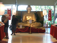 Buda gigante para oferendas na feira. Cada moeda jogada é um desejo. O dinheiro arrecadado vai ser doado para um instituição carente.