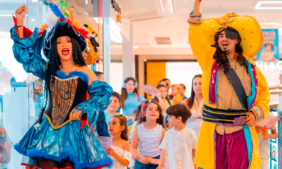 Munidos de mapas do tesouro, os pequenos marujos percorrem pontos estratégicos do shopping cumprindo missões interativas, em busca de objetos escondidos, sempre acompanhados por monitores e personagens que ajudam a dar ritmo e narrativa à aventura. A proposta estimula o trabalho em equipe, a curiosidade e o senso de descoberta, mantendo os participantes atentos e entusiasmados do início ao fim.
