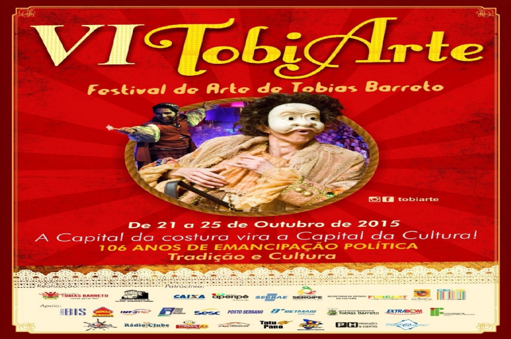 O Festival de Artes de Tobias Barreto (TobiArte) está prestes a começar. O evento chega à sexta edição e promete surpresas aos espectadores. Entre os dias 21 e 25 de outubro grandes nomes do teatro sergipano se apresentarão na Praça do Cruzeiro. Serão mais de 40 atrações, entre espetáculos cênicos, musicais e de dança no município.