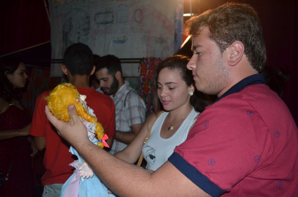 | Público ficou curioso para conhecer bonecos artesanais |