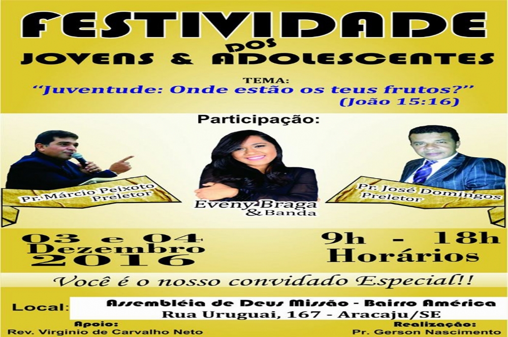 A Festividade é promovida pela Igreja Assembléia de Deus, localizada na rua Uruguai, 167, no bairro América. A direção é do Pastor Gerson dos Santos Nascimento.