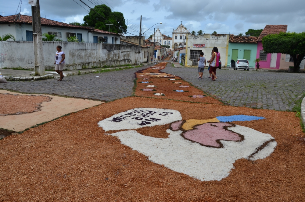 Antigamente, a comunidade passava a noite arrumando a cidade, confeccionando os tapetes nas ruas porque a procissão saía pela manhã. Mas há cerca de três anos, a igreja mudou o horário da procissão e a comunidade se adaptou: passou a acordar cedo para arrumar os tapetes coloridos pela manhã. “Isto é uma tradição. Os moradores sentem-se felizes em decorar as casas e as ruas para louvar a Jesus”, comenta o professor Júnior Lapa, 37, que acompanha a tradição desde os oito anos de idade. “Para mim, é uma satisfação participar desta atividade e aqui cada um vai ajudando de acordo com a experiência acumulada”, enfatiza o professor, um devoto declarado de Nossa Senhora de Fátima e de Nosso Senhor dos Passos.