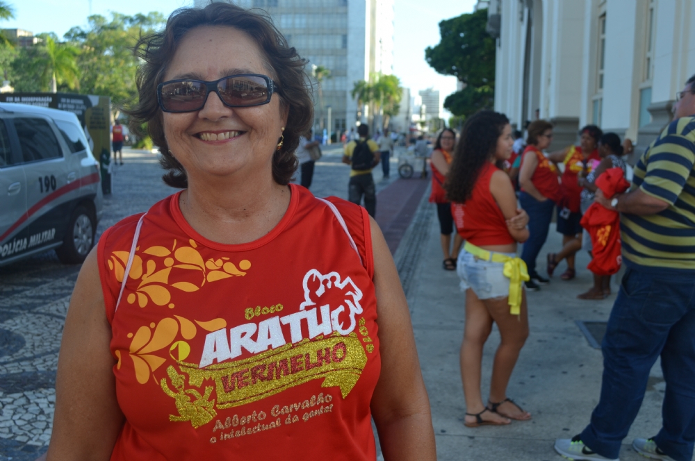 Resgatando o carnaval tradicional, com direito a marchinhas e muitas fantasias, o bloco Aratu Vermelho se reuniu no calçadão da João Pessoa nesta tarde para seguir em direção às ruas de Aracaju. Uma das pessoas que fez questão de seguir o bloco foi Fausta Dórea.