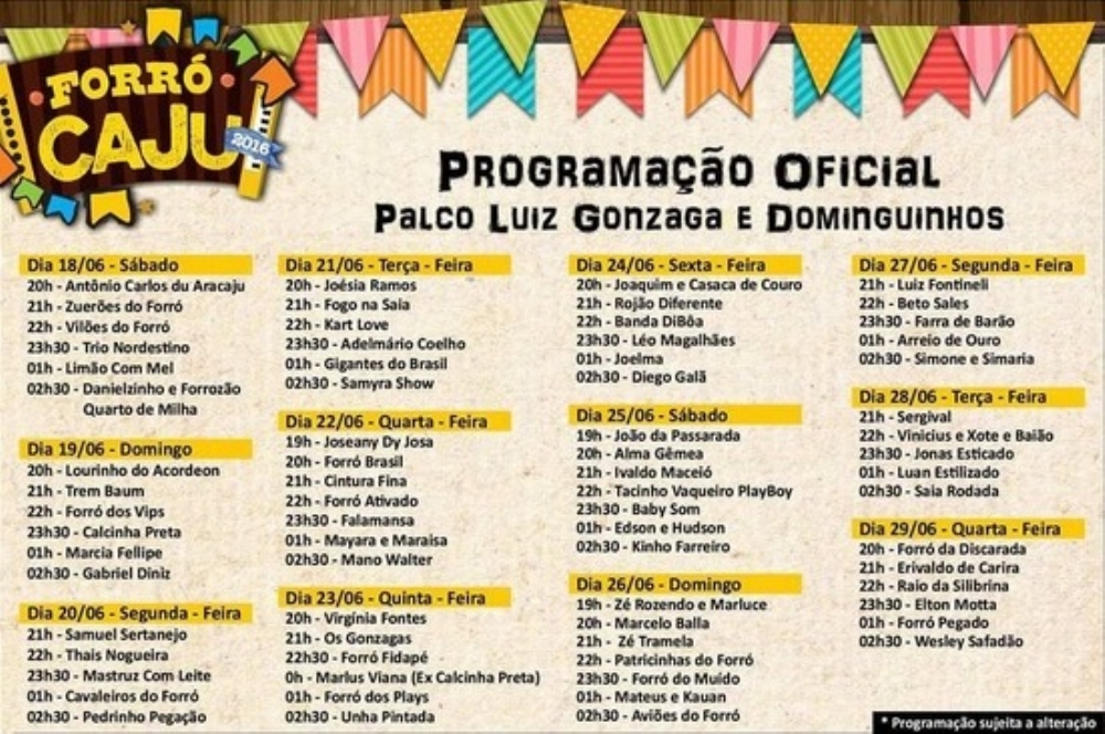 O Forró Caju 2016 acontece de 18 a 29 de junho, na praça de eventos dos Mercados Centrais, Centro de Aracaju.