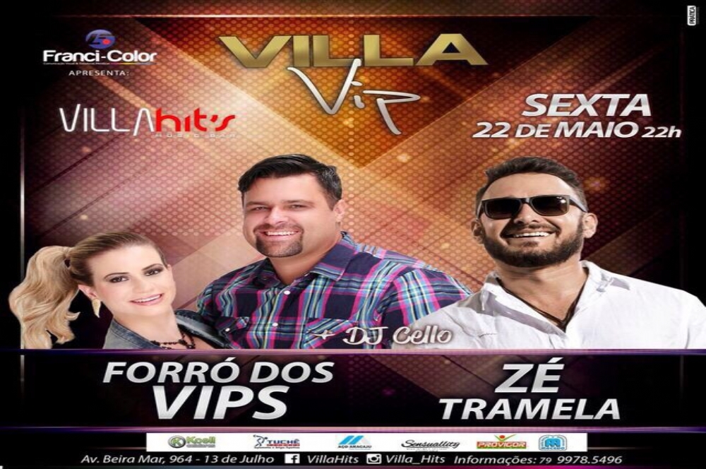 A temporada do forró já foi aberta e o clima no Villa Hits já começou. Nesta sexta, 22, a festa é a ‘Villa Vip’ com o ritmo diferenciado da Forró dos Vips e a banda contagiante Zé Tramela.