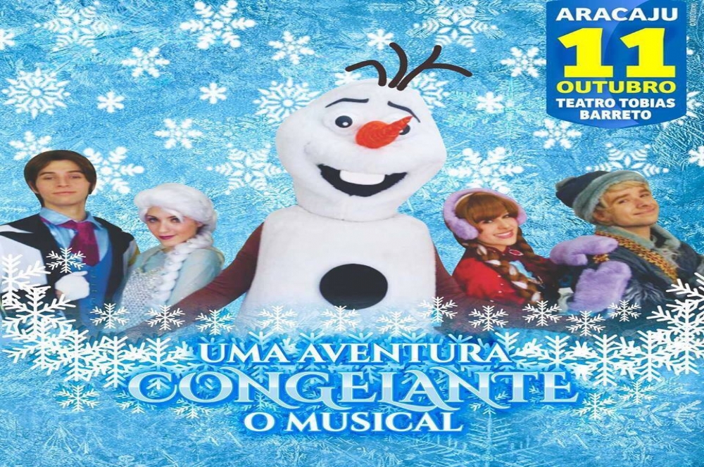 No dia 11 do próximo mês será apresentado em Aracaju o espetáculo Frozen o musical. A apresentação será no Teatro Tobias Barreto. Cantores com Performances ao vivo e efeitos especiais em um espetáculo mágico no dia das Crianças. Ingressos a venda na bilheteria do teatro. Mais informações por meio do 079 3179-1490.