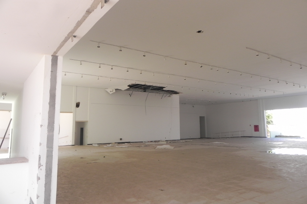 As estruturas de madeira que isolariam o prédio para as obras estão em boa parte do espaço, arrancadas. Dentro da galeria é possível encontrar vidro quebrado, água empoçada e até dejetos humanos espalhados pelo chão. Sem contar com as péssimas condições do teto da galeria, que tem uma parte prestes a soltar.