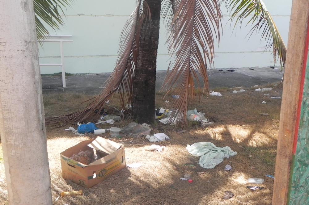A situação na área externa não difere do quadro interno. A não realização das obras de reforma culminou com a utilização do espaço como reserva de lixos de todo o tipo. Comida estragada, roupas velhas, papel e plástico são facilmente visualizados por quem passa pelo local.