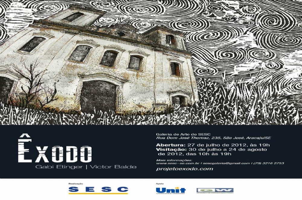 A galeria do Sesc Centro abriga amanhã, dia 27, ás 19h, a vernissage da exposição Êxodo, uma ousadia da artista visual Gabi Etinger e do fotógrafo Victor Balde, que adivinharam no deslocamento geográfico uma oportunidade de ampliar horizontes, descobrir significados e exercitar o olhar usualmente condicionado pelo universo urbano das grandes cidades.