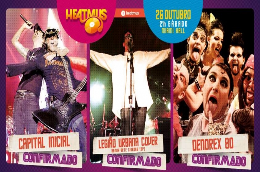 Heatmus 2013 será realizada no dia 26 de outubro, a partir das 21h, no Miami Hall. O agito ficará por conta de Capital Inicial, Denorex 80 e Legião Urbana Cover.