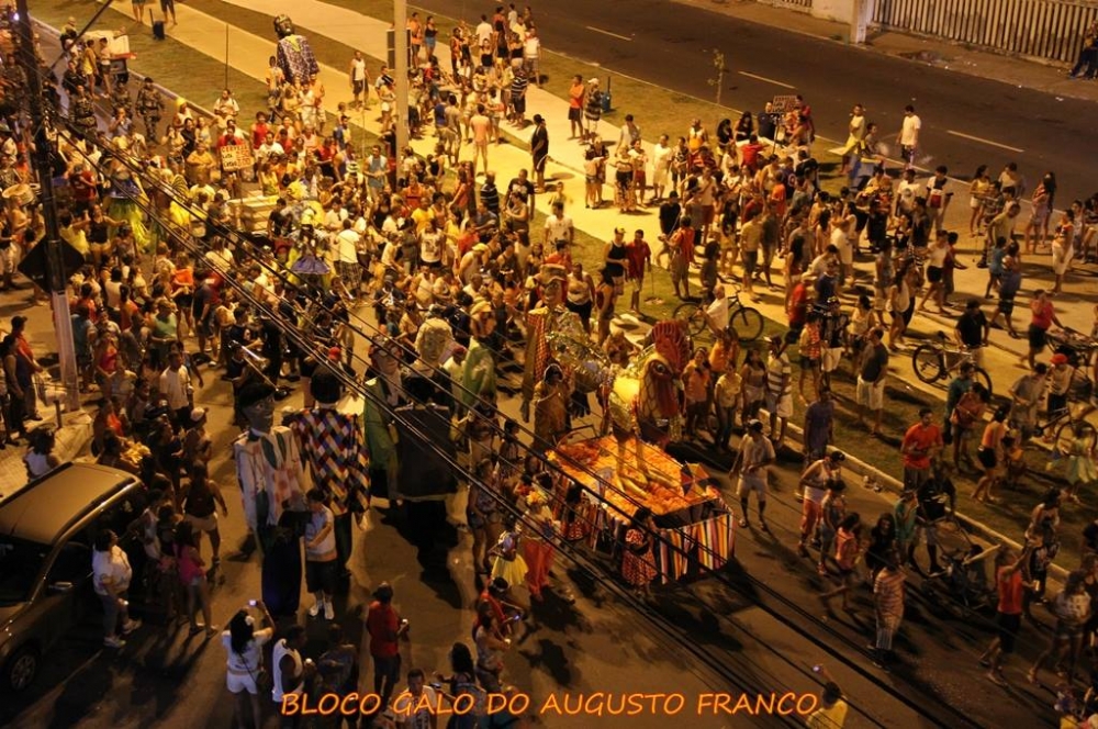 Do alto dos seus quatro metros de altura, o Galo do Augusto Franco dá início, no próximo sábado, 30, a folia momesma. Ao resgatar a alegria dos antigos carnavais de rua, o Bloco Galo do Augusto Franco já se consagrou como o mais esperado da capital sergipana, e comemora seus sete anos prometendo contagiar os foliões com o balanço do frevo, a alegria dos bonecos gigantes, o gingado do axé e a irreverência da rainha Fabrícia.