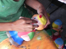 No processo final, a artesã explica que existe duas maneiras de realizar o trabalho. “Antigamente pintávamos com bombinhas e as peças eram quase todas de uma só cor. Depois aprendemos a pintura com o pincel,podemos utilizar as mais diversas cores”, explica