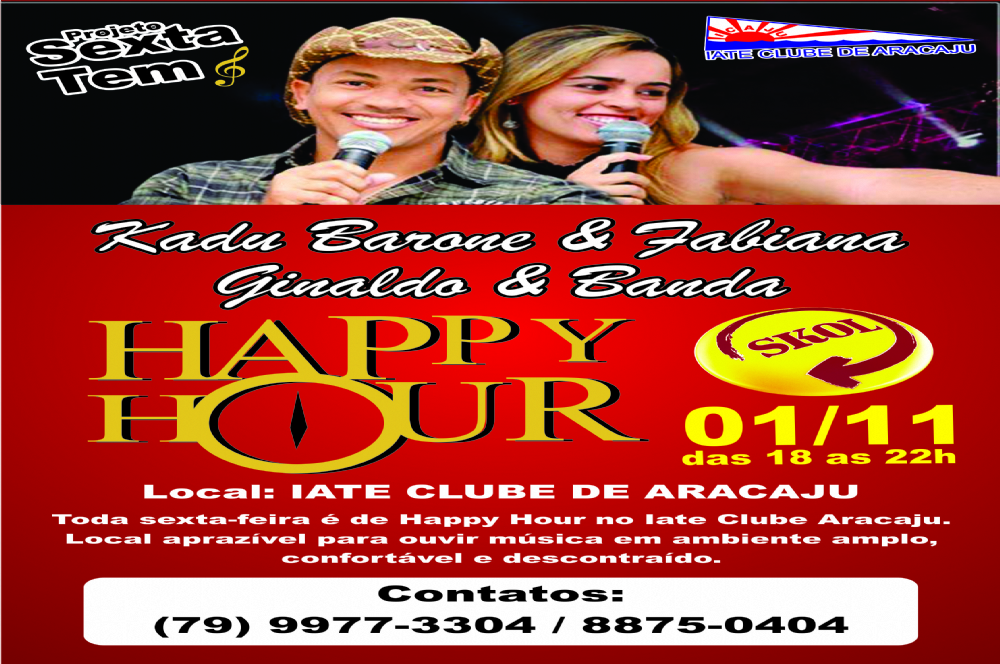 A partir do dia 1º de novembro, haverá o lançamento do Happy Hour do Iate Clube de Aracaju. O evento acontecerá às sextas-feiras, sempre com atrações musicais, e será um local recomendado para o encontro semanal de amigos e colegas de trabalho.
