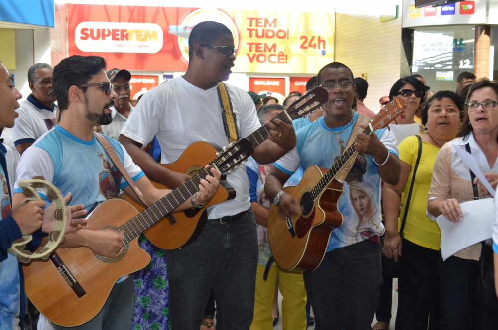 | Grupo de jovens cantou hinos em louvor à santa |