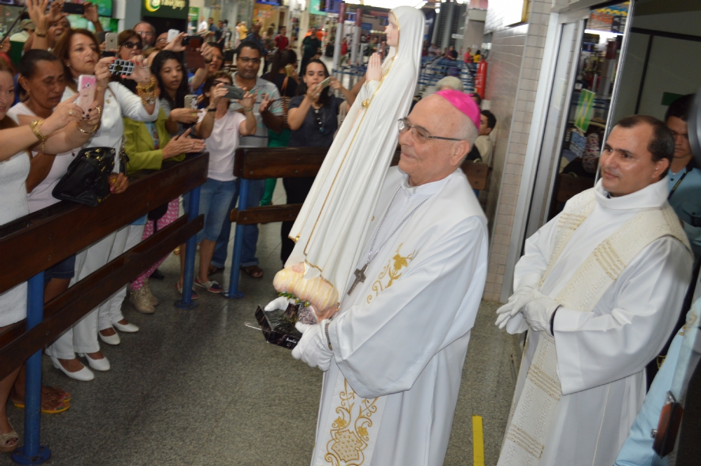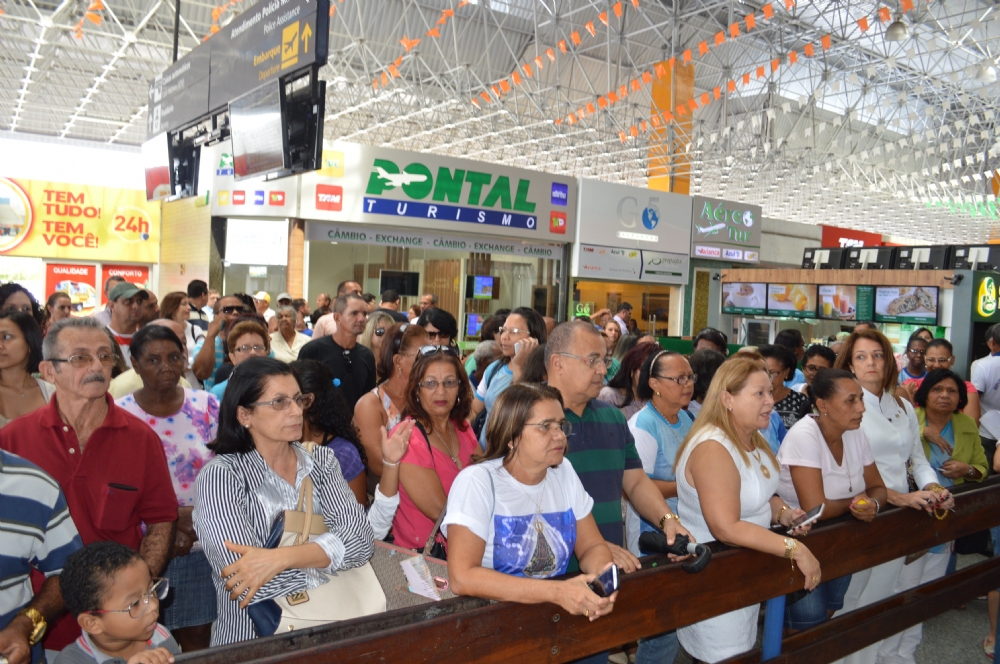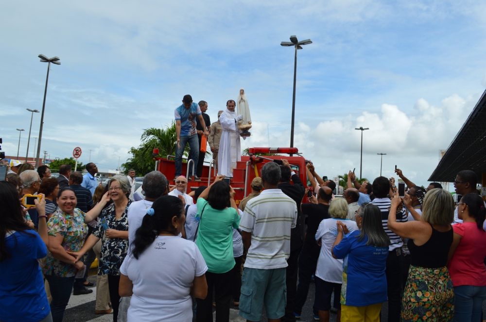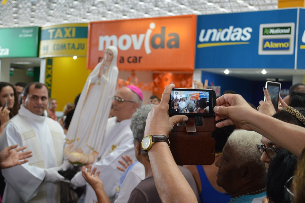 Dezenas de fiéis foram no final da manhã desta quarta-feira, 1º receber a imagem peregrina de Nossa Senhora de Fátima, no Aeroporto de Aracaju. Vinda de Portugal, a imagem ficará em Sergipe até o dia 13 de julho e seguirá para a cidade de Propriá, onde permanecerá até o dia 31 de julho. O padre Rinaldo Rezende, da Paróquia de Nossa Senhora de Fátima, no bairro Ponto Novo, disse esperar que a imagem possa passar por hospitais, asilos, Palácio do Governo, Prefeitura de Aracaju, corporações policiais, para que sirva como reflexão “nesse momento degradável, sem moral e de pouca fé”.
