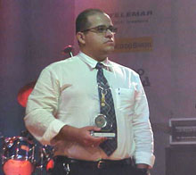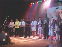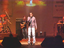 Quem subiu ao palco para receber o prêmio foi o funcionário da empresa David Magno. Para ele, o Sescanção é importante porque serve como incentivo para enfatizar as qualidades dos artistas da terra. “Para a gente, é uma honra uma empresa totalmente sergipana poder contribuir de alguma forma para a cultura musical do Estado”, explicou David. A InfoNet apoiou o evento integralmente e espera poder contribuir DELIBERAÇÃO – Enquanto o júri delibera, o cantor Cláudio Barreto realiza um show. Ele obteve menção honrosa no Secanção 2001. Há dois anos, Cláudio conquistou o respaldo e o respeito do público. Daqui a pouco, começa a entrega do troféu Clemilda para os parceiros do evento. Eles são o Portal InfoNet, a Telemar, o Banco do Brasil, a Casa do Artista, a Masterradius, a TV Caju, a Ouro Negro FM, a Liberdade FM, a Secretaria de Estado da Cultura e o Cinform.