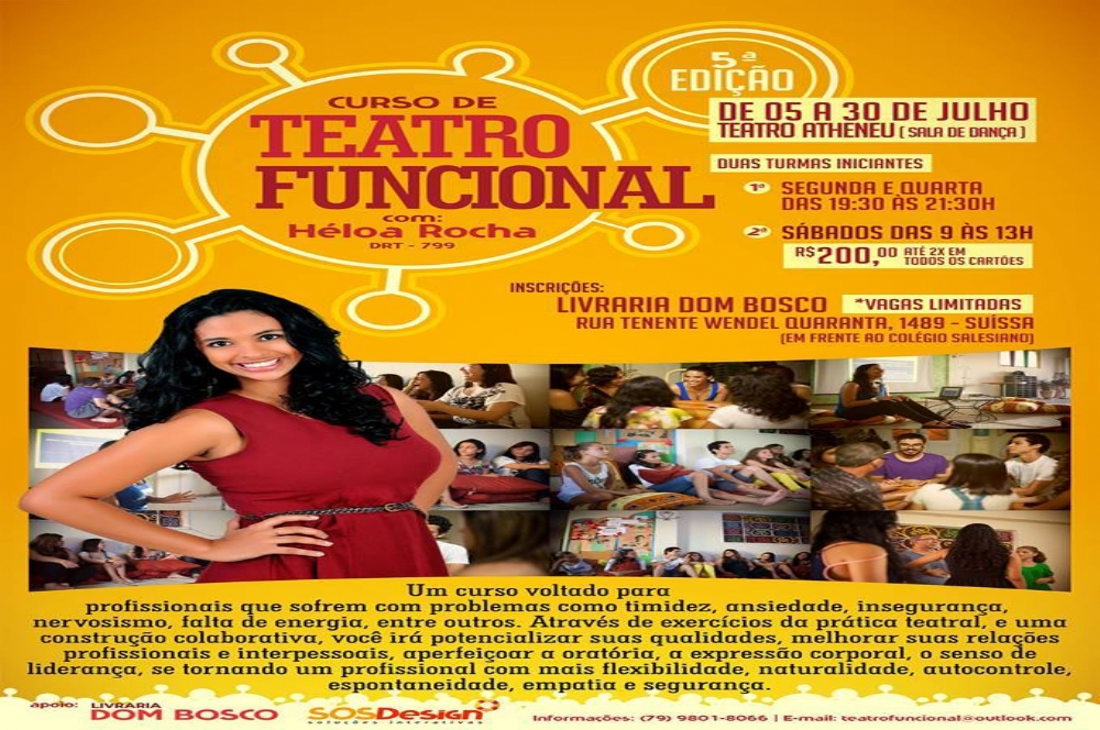 As inscrições podem ser feitas na Livraria Dom Bosco, localizada a Rua Tenente Wendel Quaranta, 1489 – Suissa (em frente ao Colégio Salesiano). Maiores informações pelo telefone: (79) 9801-8066, ou através do e-mail teatrofuncional@outlook.com
