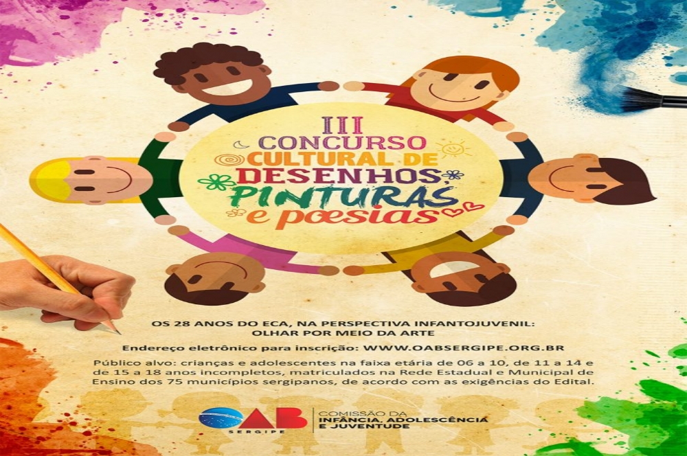 Sob o tema “Os 28 anos do Estatuto da Criança e do Adolescente: Olhar por meio da arte”, a competição visa criar um espaço de interlocução entre a OAB/SE e a comunidade estudantil, a partir da compreensão prévia do público infanto-juvenil sobre os direitos das Crianças, Adolescentes e da Juventude.